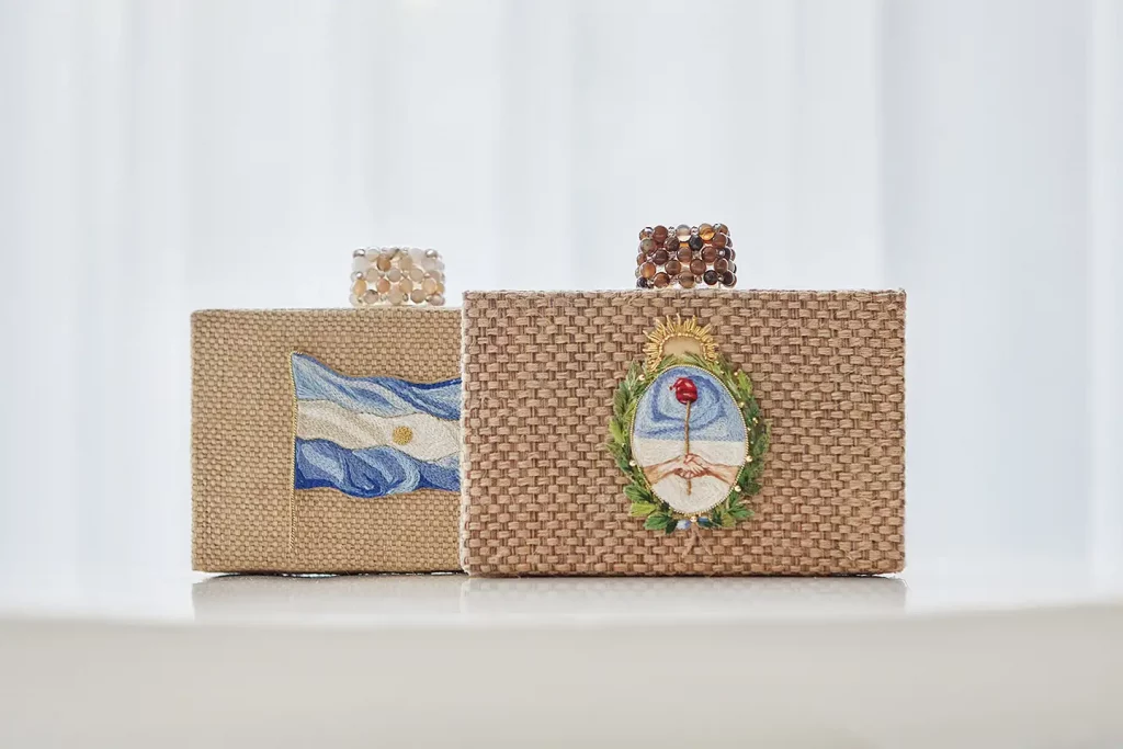 La diseñadora llevó más allá su imaginación al reinterpretar el escudo nacional y la bandera argentina en una cápsula, creando un accesorio que expresa identidad y estética contemporánea.