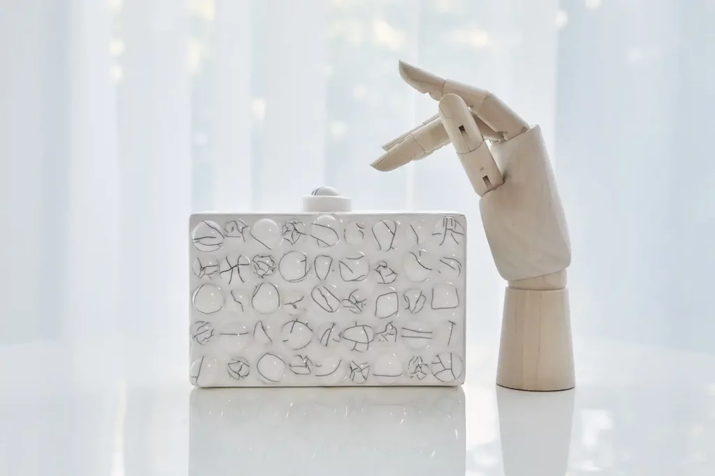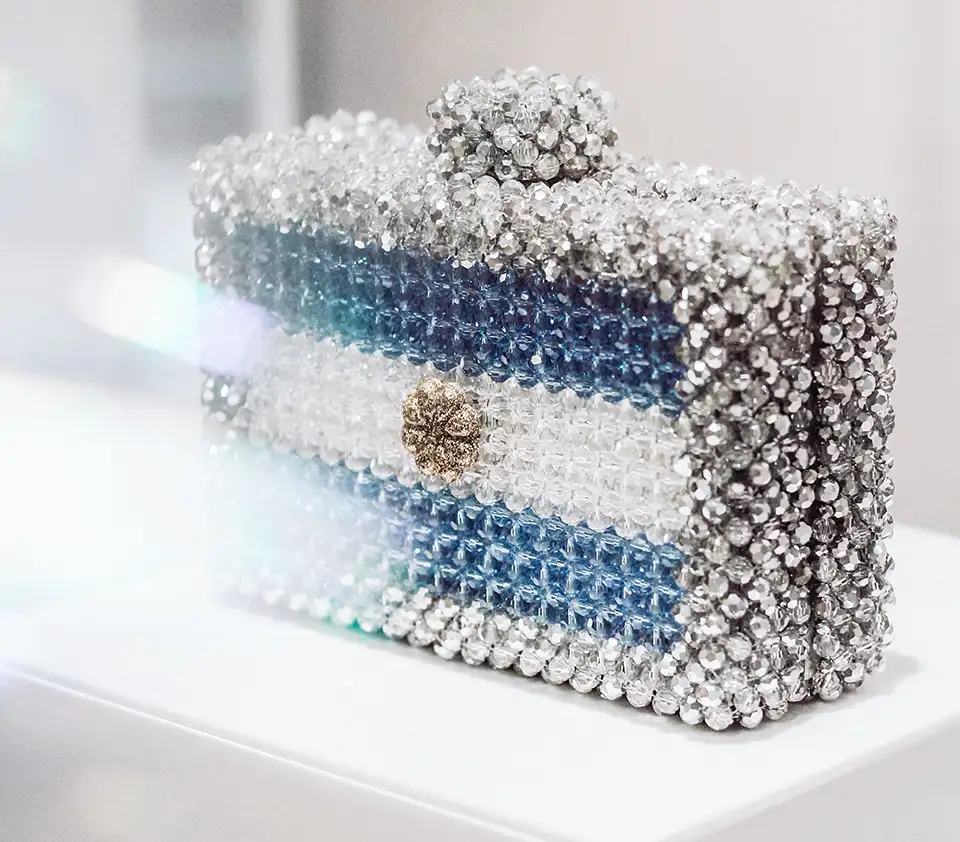 «Elegí trabajar con el clutch. Una pequeña caja bellamente decorada hasta entonces inédita en el diseño de autor en Argentina, lo que me permitió cubrir un nicho y convertirlo en un soporte para experimentar con elementos, texturas y técnicas, dando lugar a objetos de autor singulares.» —señala la diseñadora.